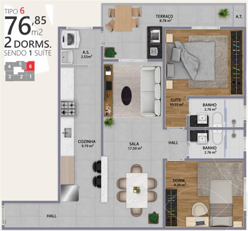 Área Útil76,85m²